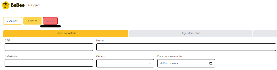 * Você será redirecionado à página onde estão armazenado os dados deste contato. Localizado ao lado esquerdo superior de sua tela, você verá a opção **"excluir"**;