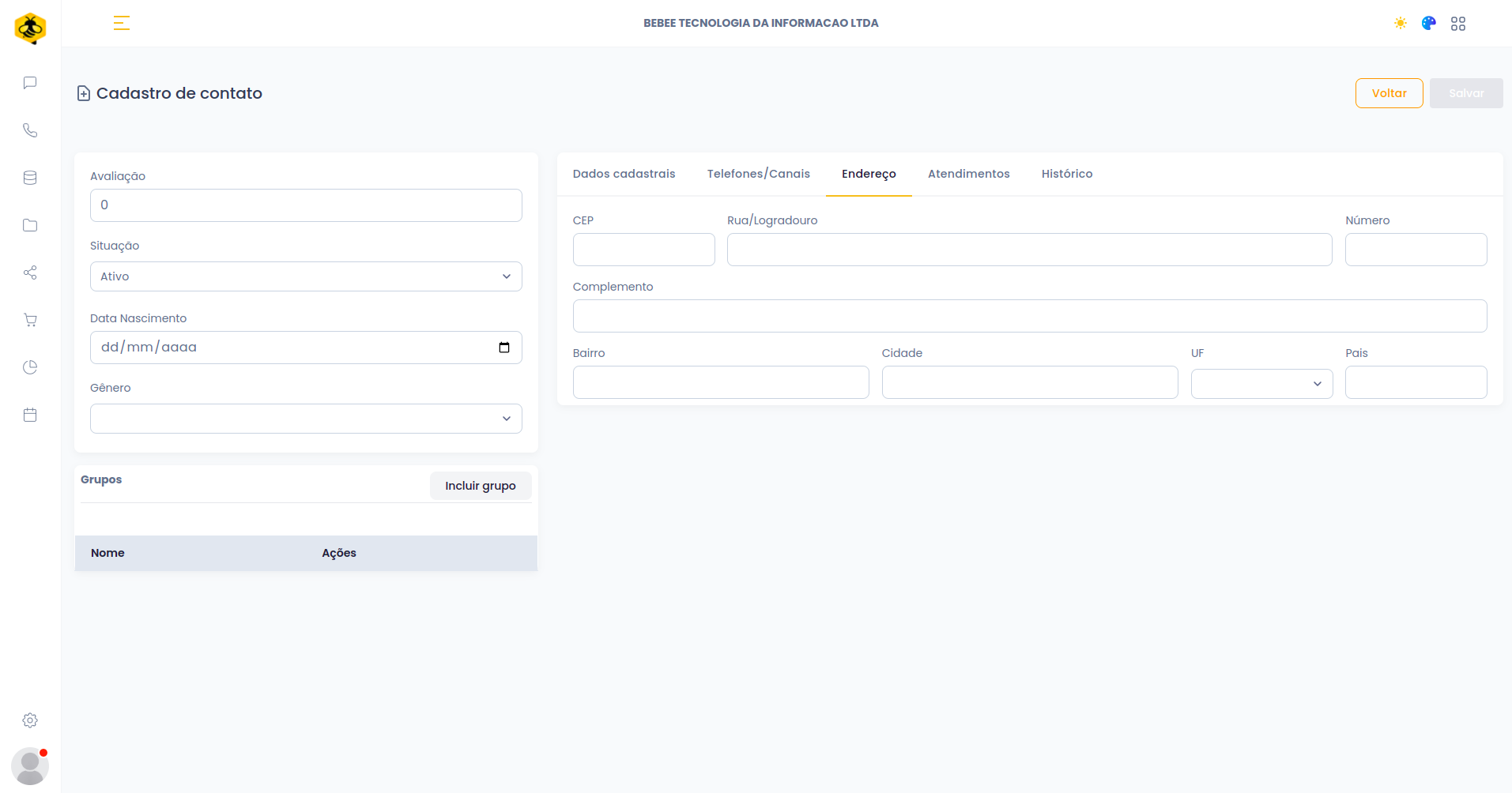 **Para saber:** É importante vincular grupos aos contatos para que você crie e gerencie de forma eficiente a segmentação de cada contato.